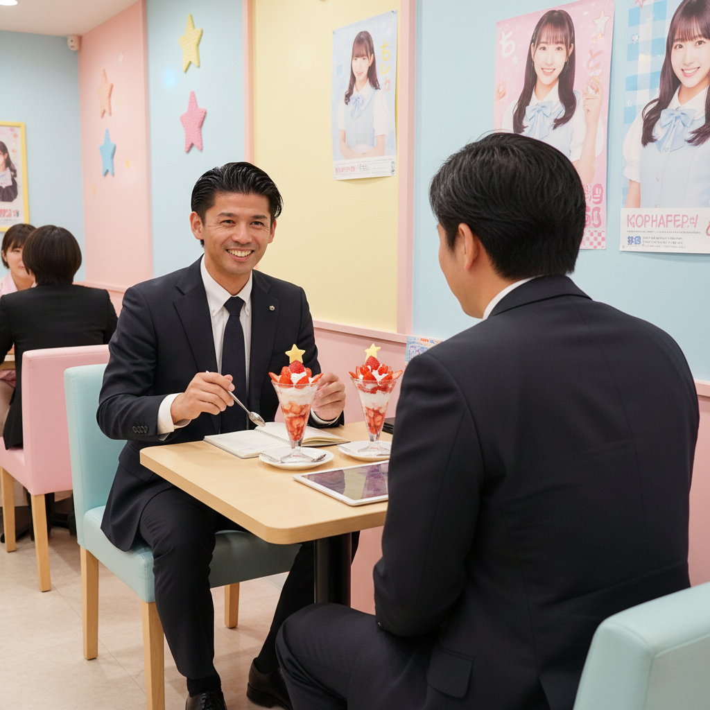 “いちごなんとかーベリー”というメニュー達にかこまれて打ち合わせ。